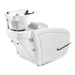The Salon Shampoo Chair Anode #7837 offers a premium blend of comfort, durability, and functionality. Designed and manufactured in the U.S., this unit combines a reinforced steel frame, high-density memory foam seating, and a manual leg-rest adjustment for client comfort. Its tilting ceramic sink, available in black or white, provides flexibility for both backwash and side-wash setups, ensuring ease of use in professional salon and spa environments. Built for longevity and backed by a one-year warranty, this chair is a reliable investment for everyday operation.