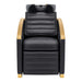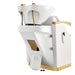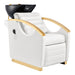 Experience the epitome of luxury and advanced technology with the Bella V Gold Reclining Salon Shampoo Massage Chair. Designed and manufactured in the U.S., this chair elevates scalp care and shampoo services with unmatched comfort and durability. Its European-inspired design pairs premium functionality with elegant gold-finished arms, creating a professional and sophisticated look for any salon or spa. Clients enjoy shiatsu roller-ball massage, vibrating seat, and leg-rest massage—all controlled effortlessly with a convenient remote—while the reclining feature and tilting ceramic sink ensure total relaxation. Built with reinforced steel framing and high-density memory foam, this chair is engineered for long-lasting performance in demanding salon environments.