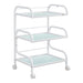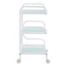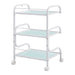 Designed for professional environments, the Damien medical spa trolley cart is an essential piece of equipment for high-end salons, spas, and medical offices. Constructed with an industrial-strength steel frame and finished with three frosted tempered-glass shelves, this trolley offers both style and functionality. It is ideal for organizing tools and supplies while maintaining a sleek, elegant appearance. The quality casters ensure easy maneuverability, allowing the trolley to be repositioned effortlessly as needed, without sacrificing durability.