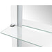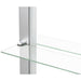 - Elegant, modern design with sleek frame and clear tempered glass shelf