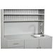 The DIR Maple Salon Color Bar offers an ergonomic work surface with adjustable compartments, making it easy to store color tubes, developers, and mixing tools. The included stainless steel sink with water fixtures further elevates the workstation's functionality. The entire unit is built with a commercial-grade aluminum frame, ensuring long-lasting durability and performance.